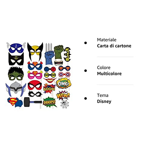 【 Accessori per selfie di alla divertenti 】: Gli accessori dei supereroi sono molto adatti per feste in maschera, feste di compleanno e feste a tema supereroi. Aggiungi interesse alla tua festa ora. Libera la tua creatività.