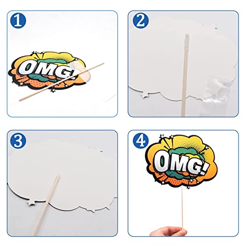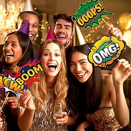 【Alta Qualità】: Gli oggetti di scena per la festa di Supereroe sono realizzati in cartone resistente e bastoncini di bambù. Rispetto agli oggetti di scena tradizionali, queste carte non sono facili da piegare, resistenti e possono essere riutilizzate. rendi la tua cabina fotografica più divertente, coinvolgente, interattivo.