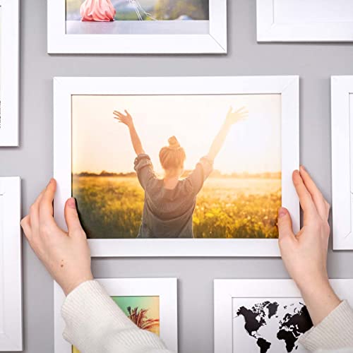 PHOTOLINI Set di 10 cornici bianco legno MDF, cornici larghe, moderne, plexiglass infrangibile, da tavolo o da parete, accessori extra - per una parete dal look raffinato
