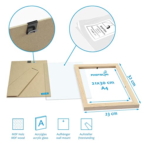 Photolini Set di 3 cornici per Foto da 21x30 cm/DIN A4 Modern Naturale in MDF con Vetro Acrilico, Accessori Inclusi/Collage Foto/Galleria Fotografica