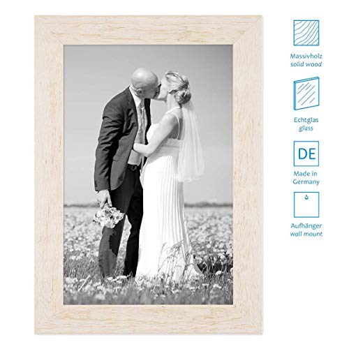 PHOTOLINI Cornici in legno bianco, set di 15 cornici per foto in vero legno rustico, con vetro, 10x10 a 20x30 cm, da parete, accessori extra - aspetto legno naturale di deriva