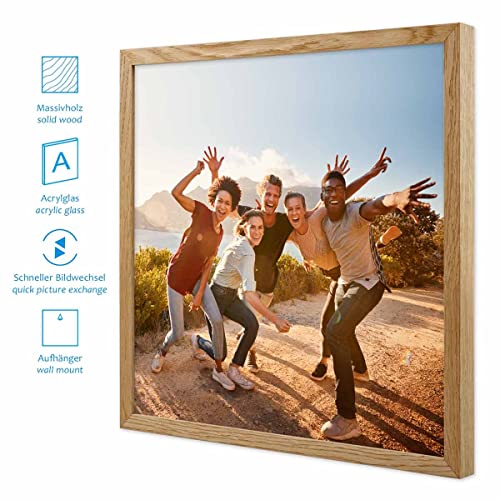 Photolini Set da 2 cornici in Legno Rovere massello 30x30 cm con lastra di Vetro Acrilico e Accessori | Cornice in Legno Sottile