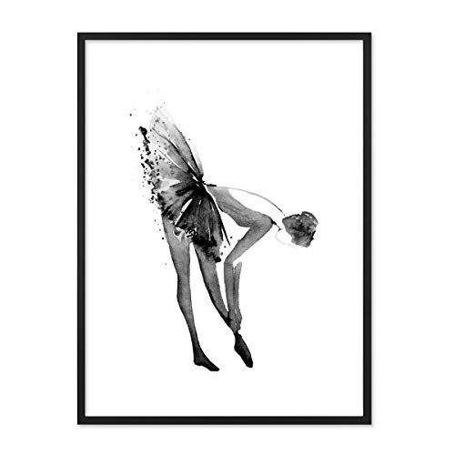 Photolini Poster di Design 'Ballerina', con Cornice Nera da 30x40 cm, Disegno ad Acquerello di Una Ballerina Classica in Bianco e Nero