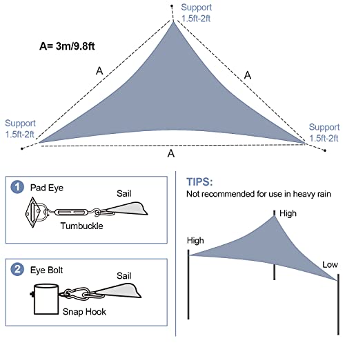 Facile da Installare: i triangoli delle vela ombreggiante triangolare in tela sono fissati con occhielli in acciaio inossidabile e i bordi della tela ombreggiante sono rinforzati con cuciture multipunto per rendere la tenda da sole più resistente. Ci sono anche 3 corde da 1,5 m, si consiglia di installare la vela ombreggiante con una leggera inclinazione di 20-40 gradi per ottenere la massima tensione per garantire un rapido drenaggio.