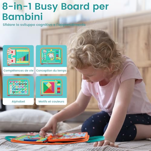 【Regali perfetti per ragazzi e ragazze di 1-5 anni】Questo quadro Montessori Busy Board è ricco di contenuti e attività per esercitare gli occhi, le mani, i piedi e il cervello. Questo giocattolo sensoriale per bambini è un regalo educativo perfetto per i bambini di 1, 2, 3, 4 e 5 anni, nonché per i bambini in età prescolare, da regalare per compleanni, Natale, il Giorno del Ringraziamento, Halloween, Capodanno, la Giornata dei Bambini e altre festività.