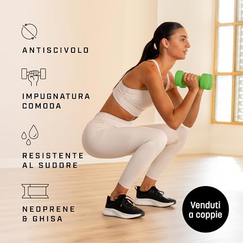RIVESTIMENTO IN NEOPRENE: manubri palestra rivestiti in neoprene di alta qualità per donne e uomini realizzati in ghisa, concepiti per durare a lungo. Questo implica anche che il sudore non è un problema e non devi preoccuparti dello slittamento.