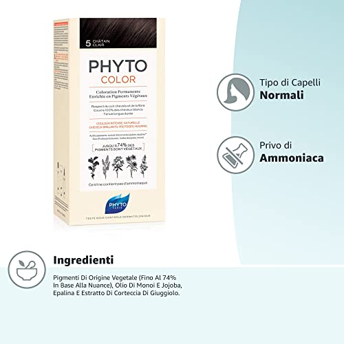 Phyto Phytocolor 5 Castano Chiaro Colorazione Permanente senza Ammoniaca, 100 % Copertura Capelli Bianchi