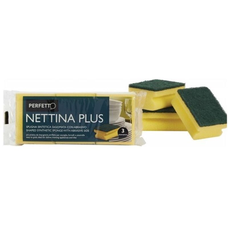 Codice: RD-0244 Marca: LA PIACENTINA. Spugna nettina plus sintetica da un lato, abrasiva dall'altro. impugnatura salvaunghie. ideale per stoviglie, fornelli e piastrelle. confezione da 3 pezzi.