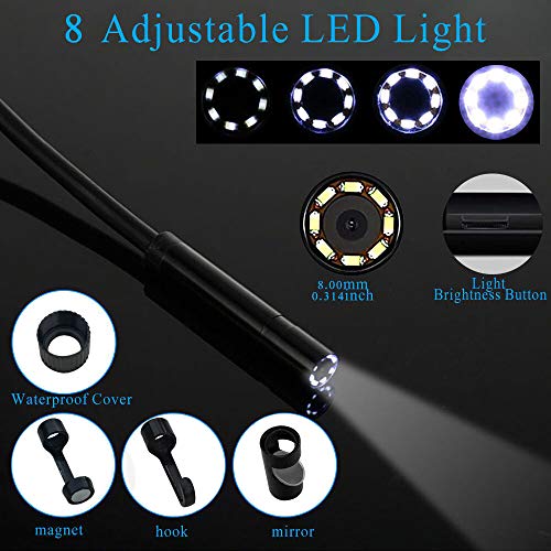 ☛ 【8 LED CON LUMINOSITÀ REGOLABILE】: L'endoscopio android incorporato 8 luci LED ad alta luminosità, regolabili in altezza, consente di lavorare facilmente in ambienti bui, usb endoscopio più specchio laterale, magnete, gancio e manicotto di montaggio, questi 4 utili accessori per rendere più facile il tuo lavoro.