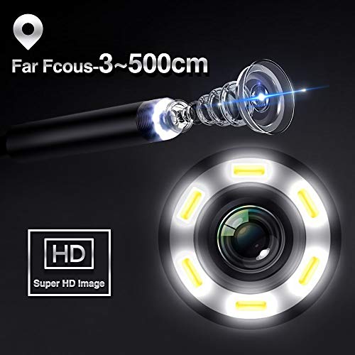 ☞Ampia Lunghezza Focale - WIFI Endoscopio è dotato di un nuovo obiettivo COMS 1080P HD da 2 megapixel, che espande la gamma di lunghezze focali delle immagini ottimali a 3-500 cm. Questo è particolarmente utile per gli utenti per verificare la presenza di errori.Non importa che tipo di ambiente complesso affronti,Le foto oi video ripresi dalla fotocamera telecamera endoscopica saranno più chiari e più facili da visualizzare.