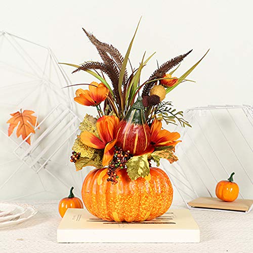 Pianta in Vaso di Zucca Artificiale con Foglie D'acero, Zucca Finta Raccolta di Fiori Artigianali Foglie Autunnali di Zucca, Zucca Realistica per L'autunno Autunno Halloween Ringraziamento Casa(#1)