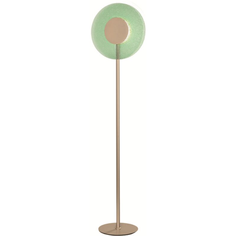 Lampada da terra Led CANDY realizzato in metallo verniciato e vetro graniglia coorato. Montatura in metallo verniciato oro. Grazie alla particolare lavorazione del vetro questo lampadario arreda con un tocco di colore e vivacita' qualsiasi ambiente della casa, ma anche spazi aperti al pubblico come locali e uffici. CARATTERISTICHE Colore: Verde Materiale: Metallo, vetro Tipologia: Piantana Altezza: 170 cm Larghezza: 40 cm Profondita': 27 cm Dimmerabile: Si Illuminazione: LED integrato Potenza: 11W 660-1100 LM Input: 220-230V Colore luce: 3000K