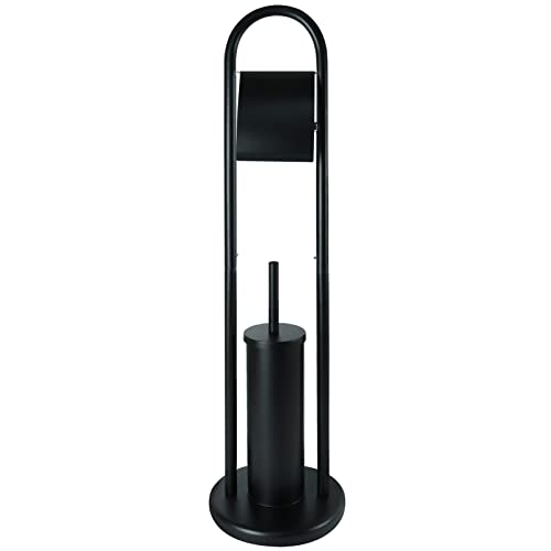 Piantana WC per Carta Igienica e Scopino, Supporto Porta Rotolo e Portascopino in Metallo Nero (22 x 22 x 81 cm), per Bagno e Toilette (Nero)