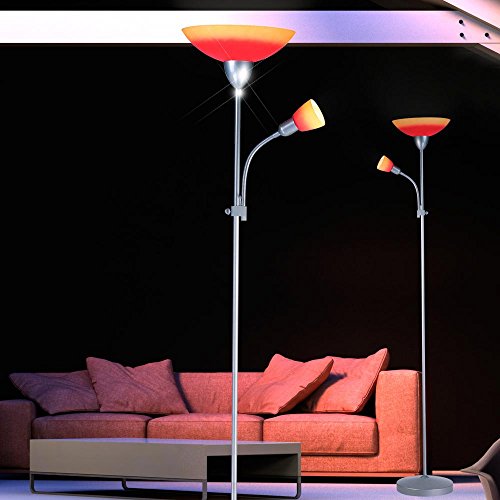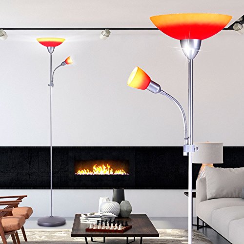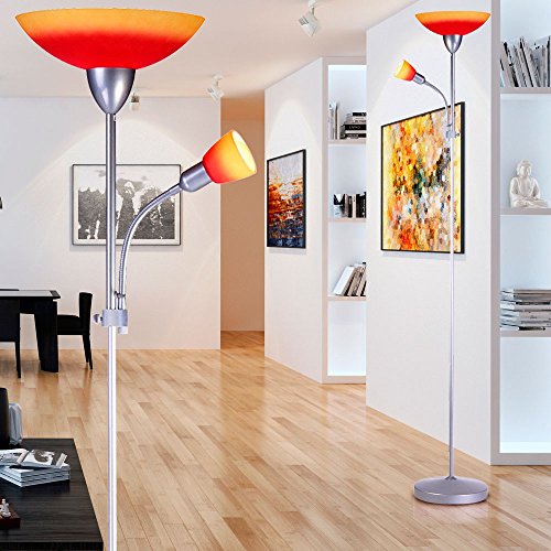 PIANTANA COLOR ARGENTO VETRO ARANCIO/ROSSO 1X60W E27 1X40W E14 Art. 58466