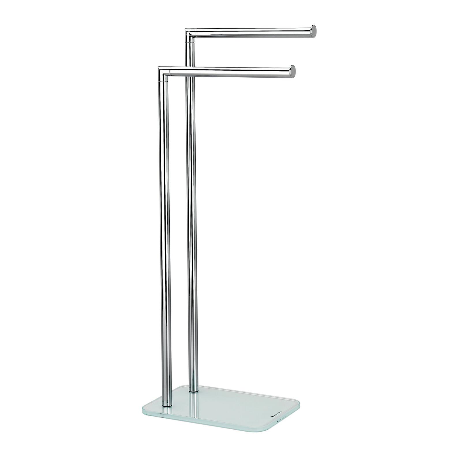In acciaio cromo lucido, base rettangolare, braccetti fissi. Stile contemporaneo per bagni moderni
