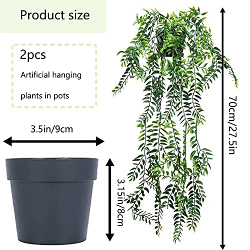 Piante Finte da Interno, 2pcs Pianta Finta Cadente in Vaso, Piante Rampicanti Artificiali Vite di Felce, Piante Artificiali, Edera Finta con Vasi, Artificiali da Appendere per Decorazioni Casa