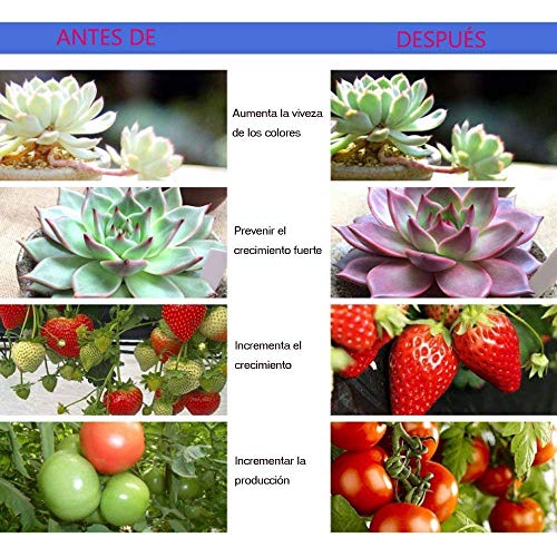 Spettro completo: 24 rosse + 8 blu + 2 luci diurne + 2 bianco caldo + 2 UV + 2 IR assicurano una lunghezza d'onda più efficace per migliorare la fotosintesi e garantire una crescita sana delle piante. Inoltre la luce del sole favorisce la fotosintesi delle piante e aiuta ad abbreviare il ciclo di crescita.