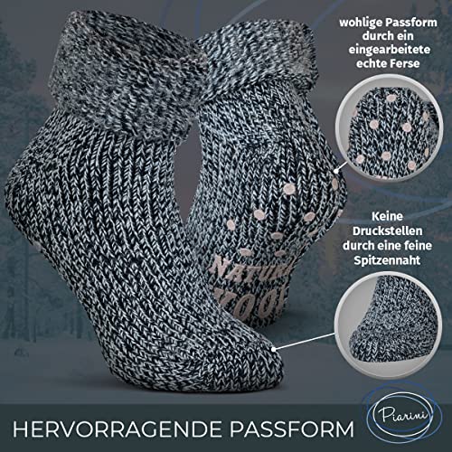 Piarini - 1 paio di morbide calze invernali in lana pregiata con suola ABS antiscivolo - blu mélange - 35-38