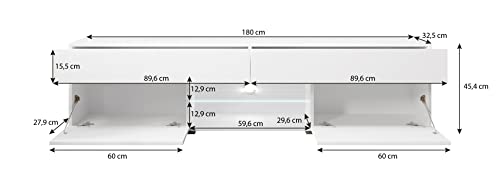 PIASKI Mobile TV Lowboard Carrera 180 cm, Mobile TV, vari colori, illuminazione a LED inclusa (bianco luminoso)