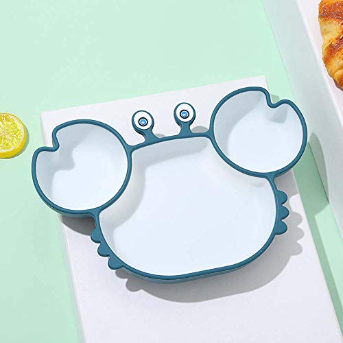 Piastra di aspirazione per bambini, tovaglietta divisa in silicone antiscivolo in silicone per bambini piccoli con forte ventosa adatta alla maggior parte dei seggioloni (Blu)