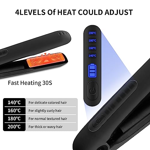 Piastra per Capelli, Piastra e Arricciacapelli Ricaricabile, Processo di Smaltatura in Ceramica, Quattro Temperature Regolabili 140-200°, Funzionamento con un Solo Pulsante, Facile da Usare