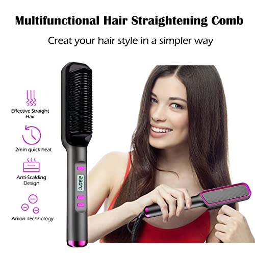 Piastra Per Capelli, Piastra Capelli Lisci Regalo Donna, Rivestimento In Ceramica Ultra, Temperatura 80-230°C Spazzola Lisciante per Capelli, Display LCD a riscaldamento rapido 2 Minuti (Grey)