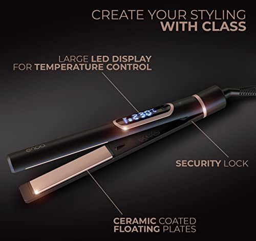 Piastra per capelli Professionale ENOA, Funzione Ionica per Capelli Morbidi e Lucenti, Rivestimento in Ceramica e Tormalina, Temperatura 5 Livelli 150-230°C, Riscaldamento Rapido, Funzione Memoria
