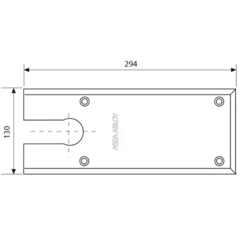 Piastra di copertura per chiudiporta a pavimento serie DC477. Finitura ottone lucido. Dimensioni 294x130 mm.