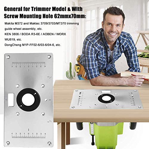 21 IN 1 Piastra per Fresatrice, Precisione Alluminio Piastra di inserimento della tavola del router con 4 anelli e 12 viti Banco Fresa per panche per la lavorazione del legno
