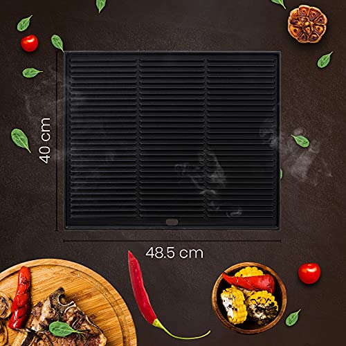 CLP Piastra in Ghisa Grill Elettrico, A Gas O Carbone I Piastra Reversibile in Ghisa Double-Face Lato Liscio + Scanalato I Diverse Misure, Colore:Antracite, Dimensione:48.5x40 cm