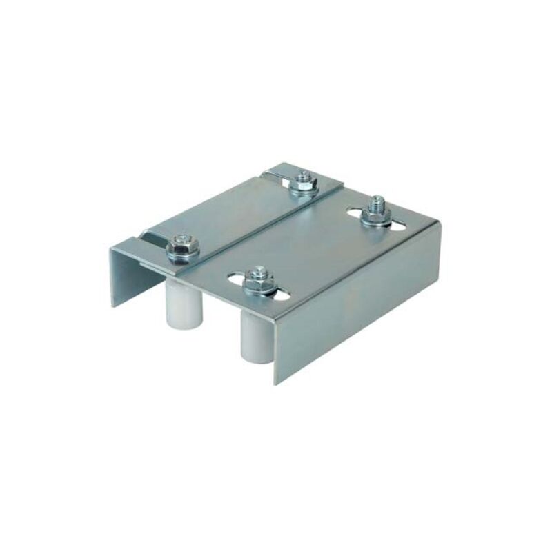 In acciaio zincato. 4 rulli in nylon Mm. 40x45. Larghezza regolabile.