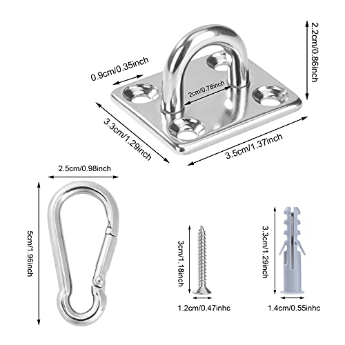 Piastra con Occhiello Acciaio, 5MM Placca Occhiello e Moschettone, Gancio di Montaggio Ancoraggio a Muro con Vite, Pad Eye Plate per Barche, Amaca, Tenda da Sole (8pezzi)