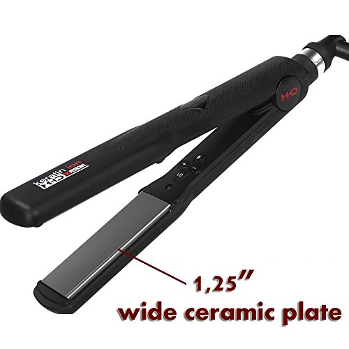 Mhd - Piastra professionale per capelli in ceramica, 140 C - 230 C, funzione di memorizzazione e spegnimento automatico, doppio voltaggio, presa inglese, cavo 2,65 m