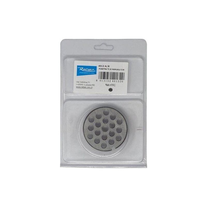 Piastra x tritacarne manuale reber N° 8 foro 8 in acciaio al carbonio.