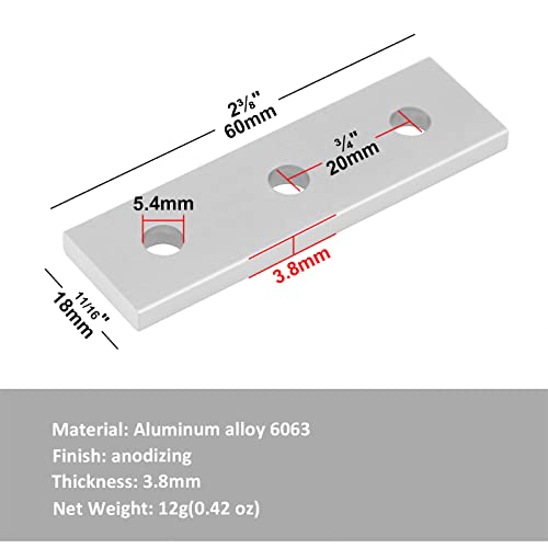 12 piastre di collegamento, accessori per profilo in alluminio, 20 x 20, 6 piastre angolari piatte dritte in alluminio, spessore 3,8 mm, 3 fori