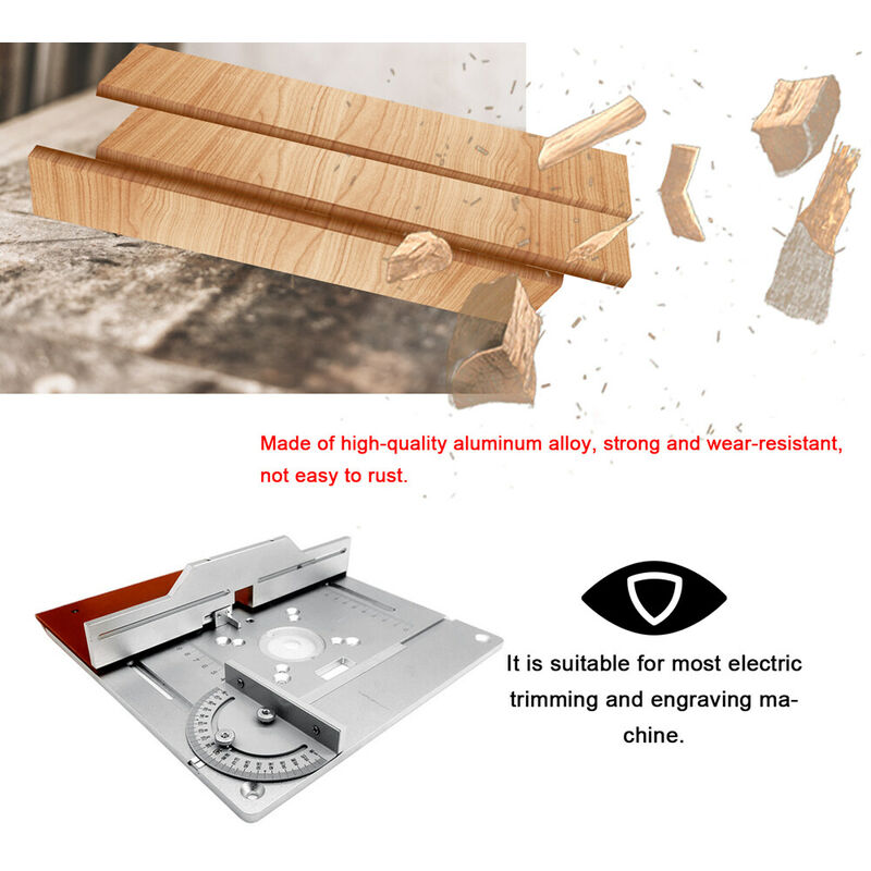 Realizzato in lega di alluminio di alta qualità, forte e resistente all'usura, non facile da arrugginire. Può facilitare la perforazione e il montaggio precisi di qualsiasi router. Con una scala chiara e non facile da indossare, è un valido aiuto per la lavorazione del legno. Dimensioni della piastra di inserimento del tavolo del router: 245 x 240 mm/9,6 x 9,4 pollici. È adatto per la maggior parte delle macchine elettriche per il taglio e l'incisione. Specifiche: Colore: argento Materiale: lega di alluminio Set: set da 4 Dimensioni piastra: 245 * 240 mm/ 9,6 * 9,4 pollici Passo del foro della vite: 62 * 70 mm/45 * 56 mm Dimensioni confezione: 260 * 280 * 50 mm/ 10,2 * 11,0 * 2,0 pollici Peso della confezione: set di 4: 1350 g/3,0 libbre Lista di imballaggio: 1 * Piastra di inserimento del tavolo del router 1 * Piastra di spinta di supporto 1 * 180° Calibro angolare 1 * Modello a coda di rondine