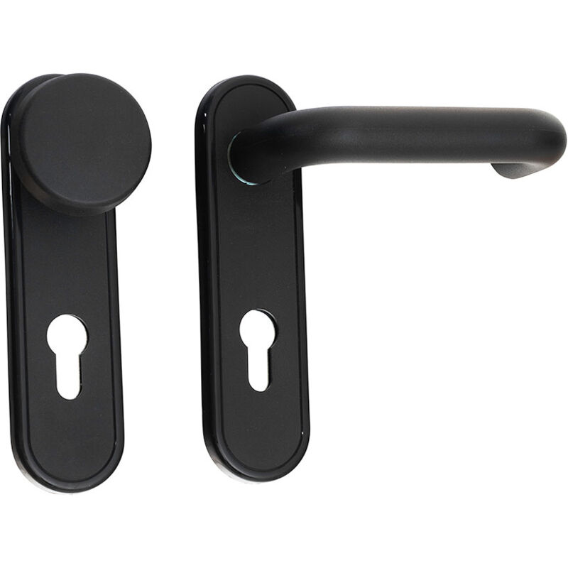 Set pomolo+piastre maniglia ignifughe 1.07070.24.0 cisa set pomolo fisso+piastre maniglia e cilindro foro d.e.72mm ignifugo finitura nera