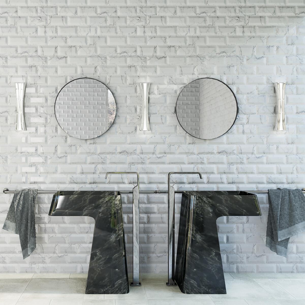 Piastrella per rivestimenti in monocottura pasta rossa, effetto marmo. Confezione da 0,60 mq. Ideale per posa a pavimento o a parete in ambienti interni alla casa. Resiste alle macchie