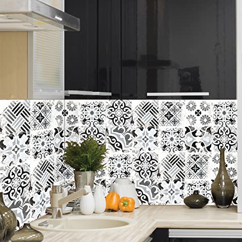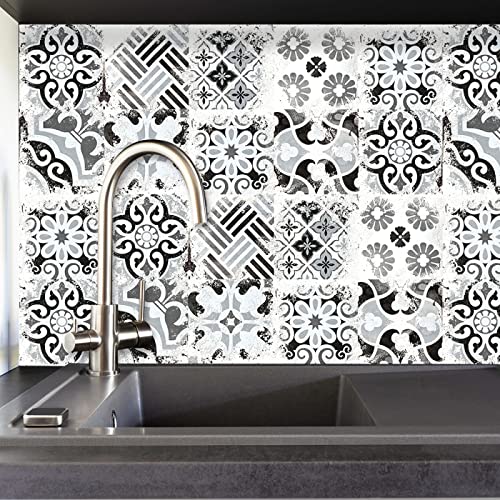 Piastrelle Adesive Cucina 20x20 Fiore Grigio Nero Piastrelle Adesive Bagno Pavimento Adesivo Paraschizzi Cucina Adesivo Piastrelle Ceramica Carta Adesiva per Mobili Vintage(10 pezzi)