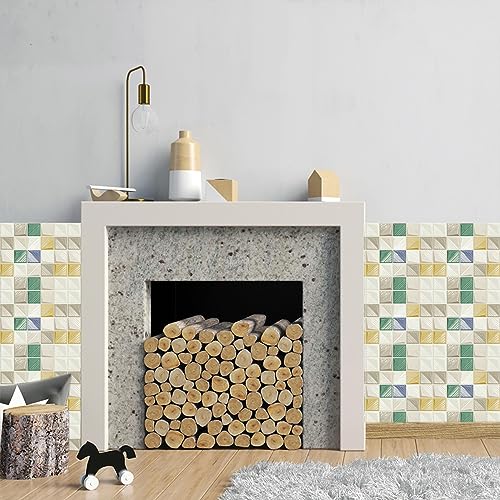 Piastrelle Adesive Cucina Giallo Verde Grigio Mattonelle Adesive Bagno Pavimento PVC Adesivo Impermeabile a Prova di Spruzzi Mattonelle Adesive Resistente al Calore Adesivi Murali 15x15cm/10 Pcs