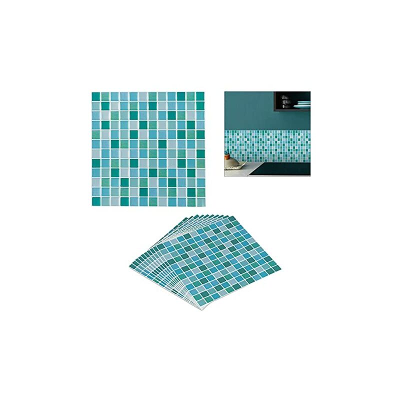Relaxdays Set da 10 Piastrelle Autoadesive, per Bagno e Cucina, HxL 23,5x23,5 cm, 3D, Mosaico, Impermeabili, Verde/Blu Set da 10Color: Verde