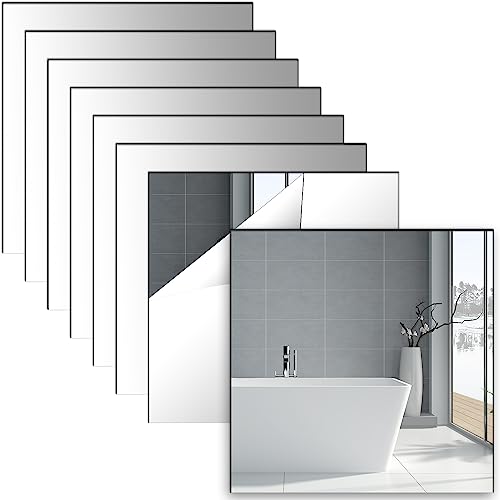 8 piastrelle autoadesive a specchio, 20 x 20 cm, da parete in acrilico, spessore 2 mm, per decorazione della casa, bagno, camera da letto (angolo destro)