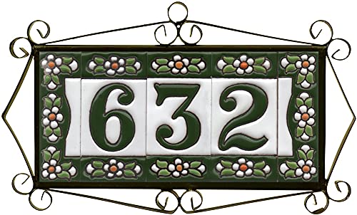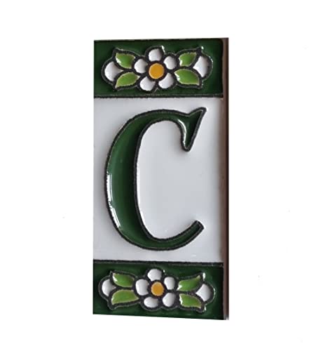 Piastrelle in ceramica con numeri e lettere, design floreale verde, dimensioni delle piastrelle: 7,5 cm x 3,5 cm, 2 a 10 cornici per piastrelle (7)