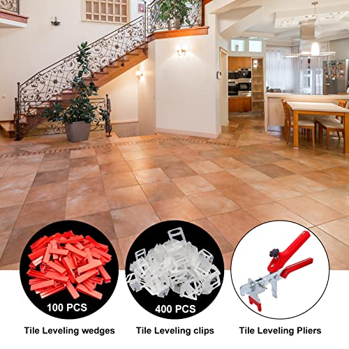 Kit di livellamento per piastrelle: 400 clip distanziali di livellamento, 100 cunei di livellamento riutilizzabili, 1 pinza per piastrelle da pavimento.