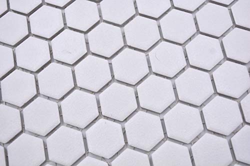 Piastrelle a mosaico in ceramica, esagonali, colore bianco, antiscivolo, rivestimento per vasca da bagno