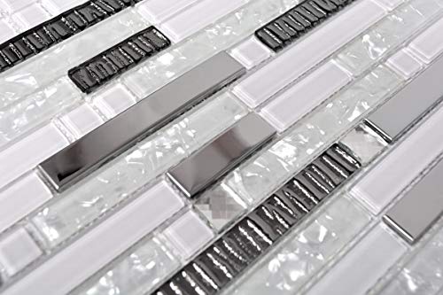 Piastrelle a mosaico, traslucide, in acciaio inox bianco, con mosaico in vetro di cristallo di acciaio bianco, per parete, bagno, doccia, cucina, cucina, rivestimento, vasca da bagno, mosaico