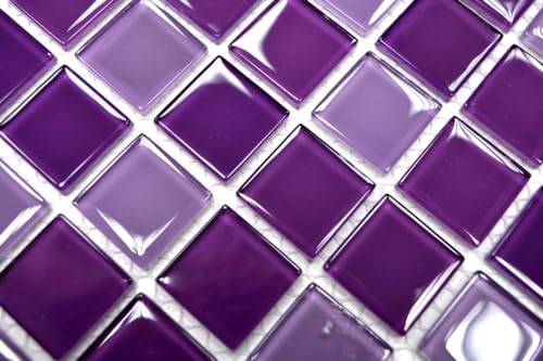 Piastrelle a mosaico, traslucide, in vetro di colore viola, per pareti, bagno, doccia, cucina, specchio, rivestimento, vasca da bagno, mosaico