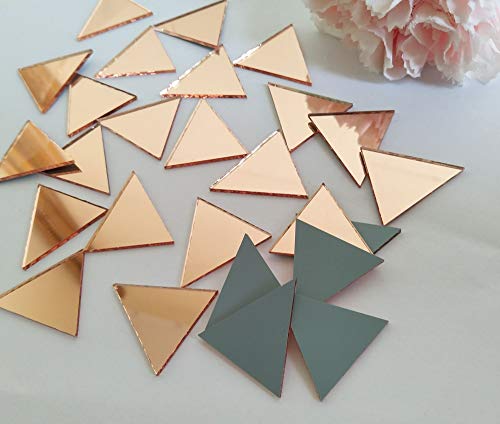 Set di 100 piastrelle di mosaico triangolare in vero vetro, specchio triangolare in vero vetro, accessorio fai da te (oro rosa)