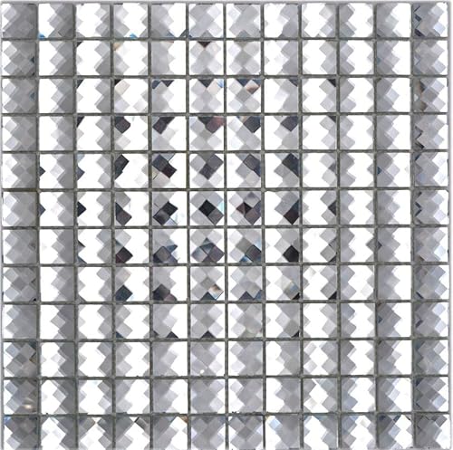 Piastrelle a mosaico, in vetro traslucido con brillantini, argento, per bagno, doccia, cucina, cucina, specchio per rivestimento, vasca da bagno, tappetino a mosaico