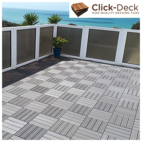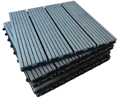 Piastrelle per pavimento in composito - le famose piastrelle a incastro - per patio, balcone, terrazza, vasca idromassaggio, piastrelle per pavimento, grigio (6x Tessere Decking)